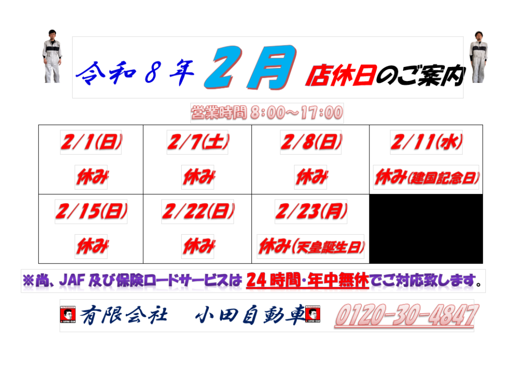☆2月店休日のご案内☆