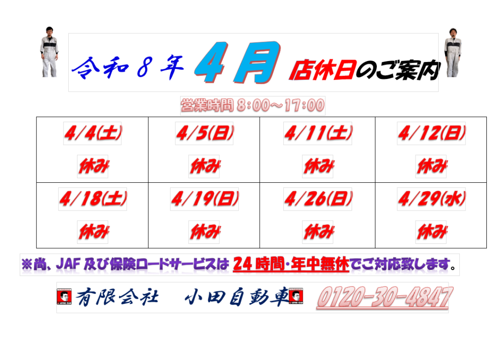 ☆4月店休日のご案内☆